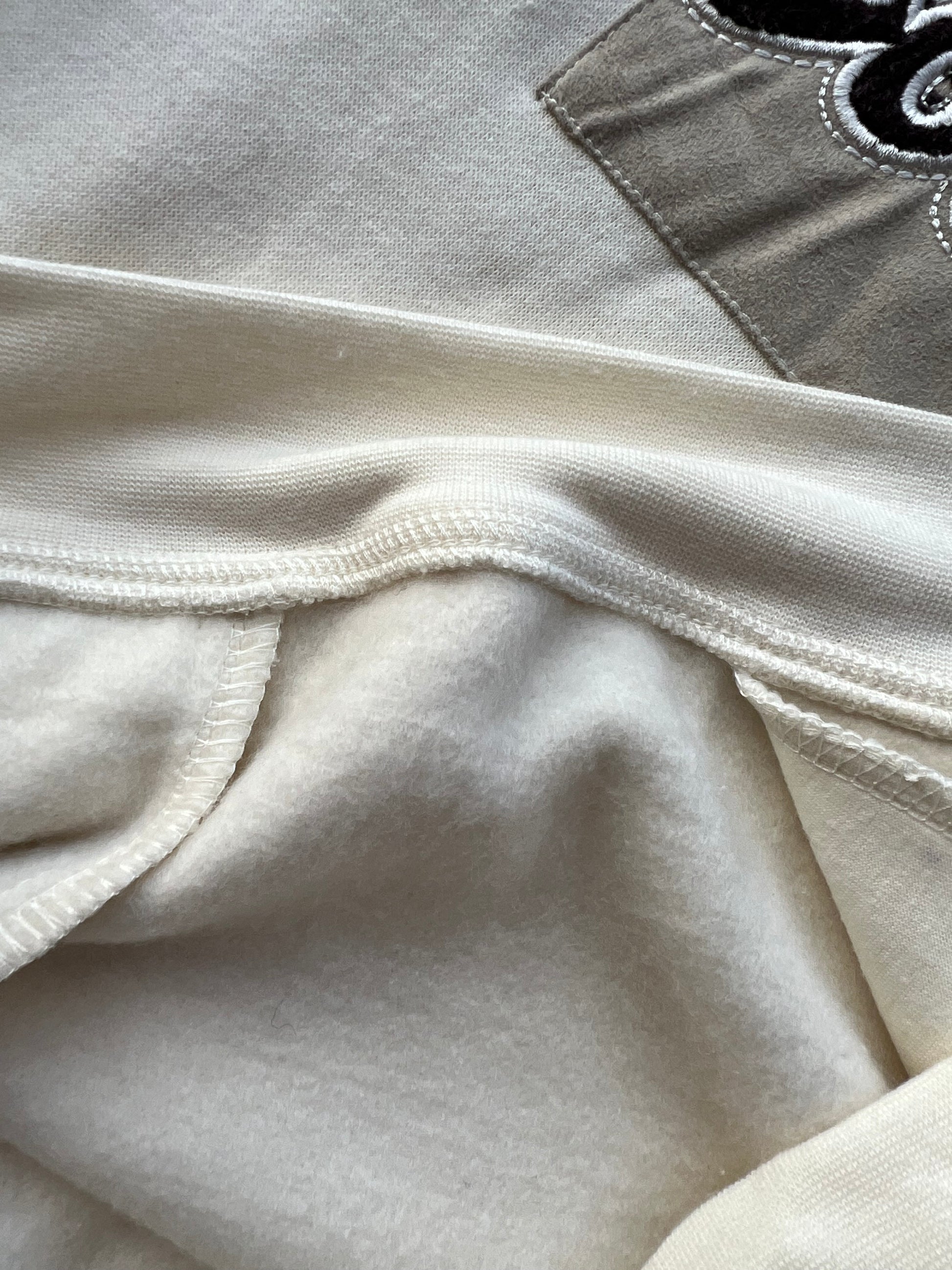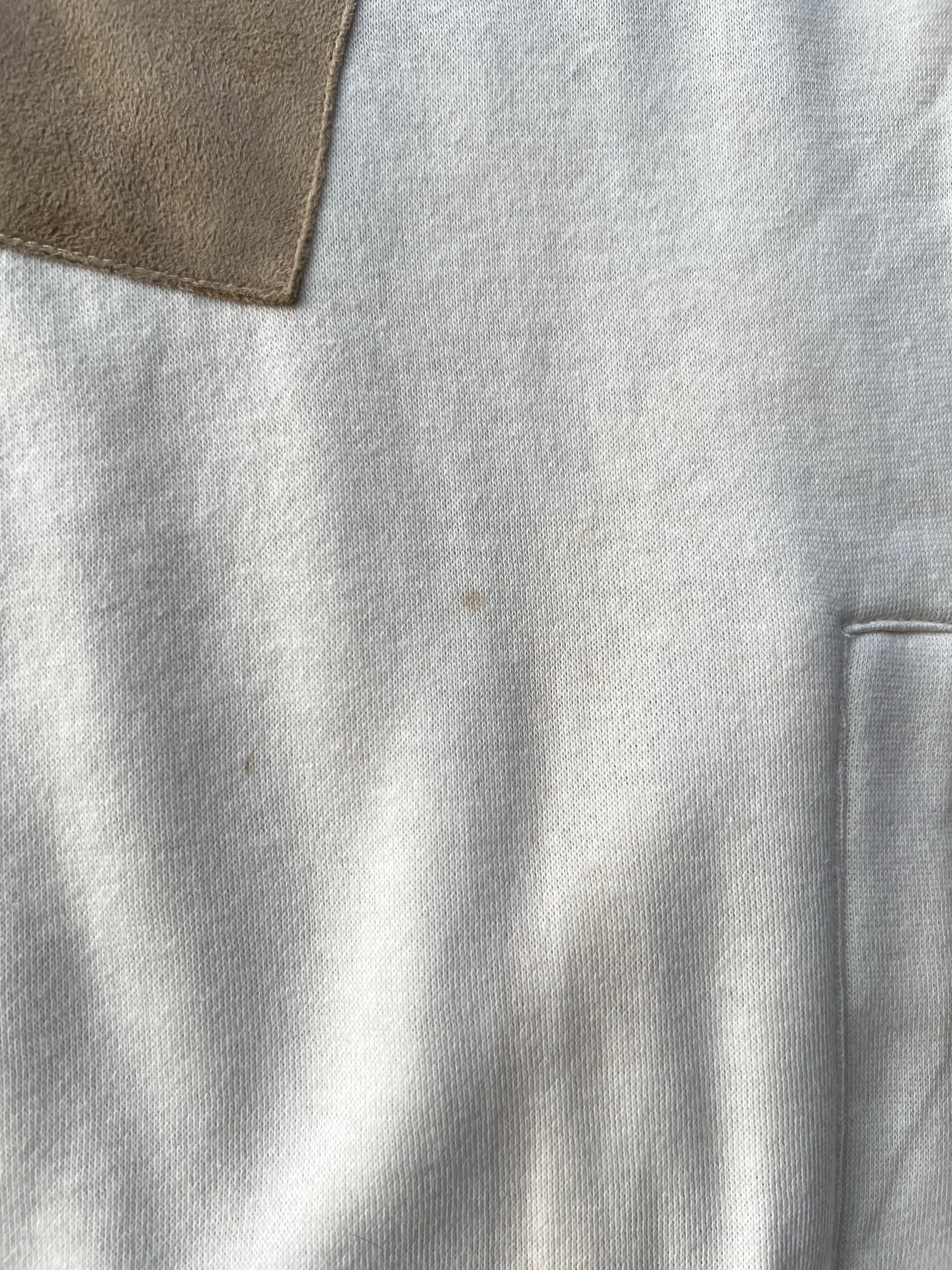 Two small and faint stains due to storage. One near front pocket and one on back shoulder. See close up pictures.